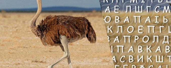 Думата „щраус“ е скрита сред хаотично разположени букви.