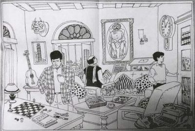 5. Най-младият човек на изображението е момчето вдясно. То разглежда книги. Но ако погледнете ризата му, ще забележите, че от едната страна е с дълъг ръкав, а от другата – с три четвърти.