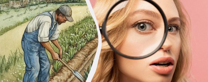 Веднага ще видите поле край живописно селце и трима мъже, които работят на открито. Трябва да определите какво не е наред в тази картинка.